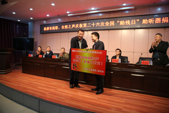 此次松原市殘疾人捐助活動是受到自然之聲公司董事長,總經(jīng)理特別批準(zhǔn)的助殘項(xiàng)目,我公司高度重視此次活動,特委派大區(qū)經(jīng)理雷鵬從北京趕來參加。