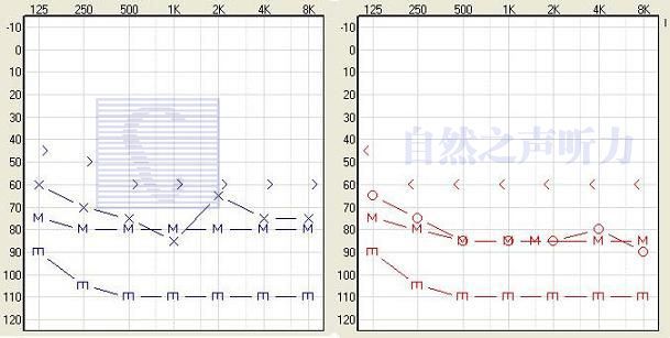 自然之聲檢查結果:耳光鏡檢查:外耳道、鼓膜正常,純音測聽結果如下